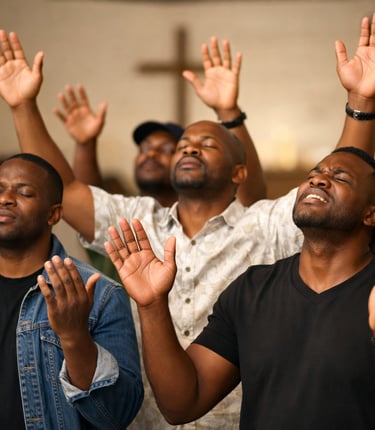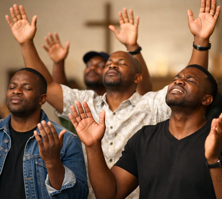 Men standing strong in spiritual leadership and brotherhood.